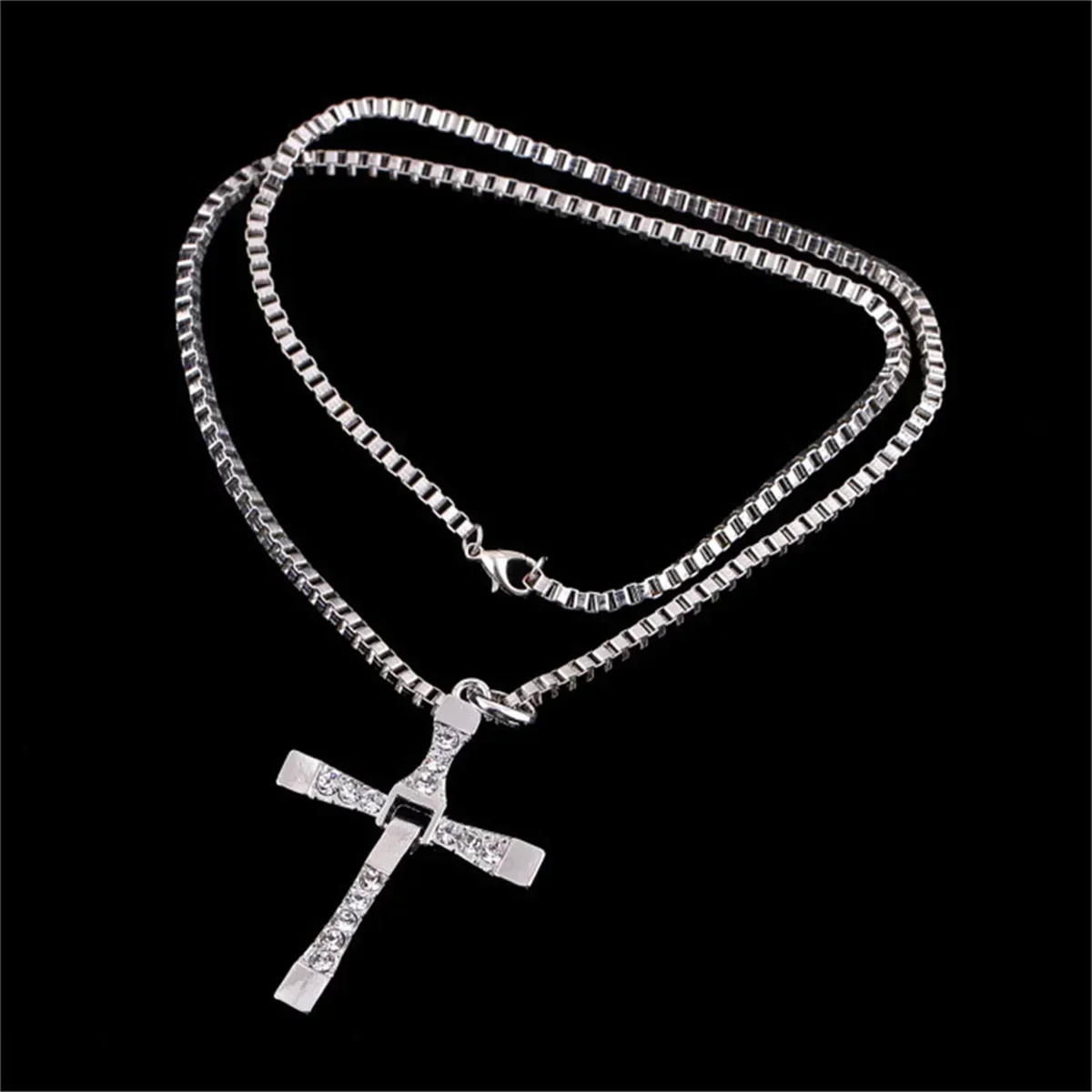 Classic Rhinestone Sliver Color Pendant Men Crystal Jesus Cross Necklace Activity Male Gift Jewelry Wholesale Dropshipping