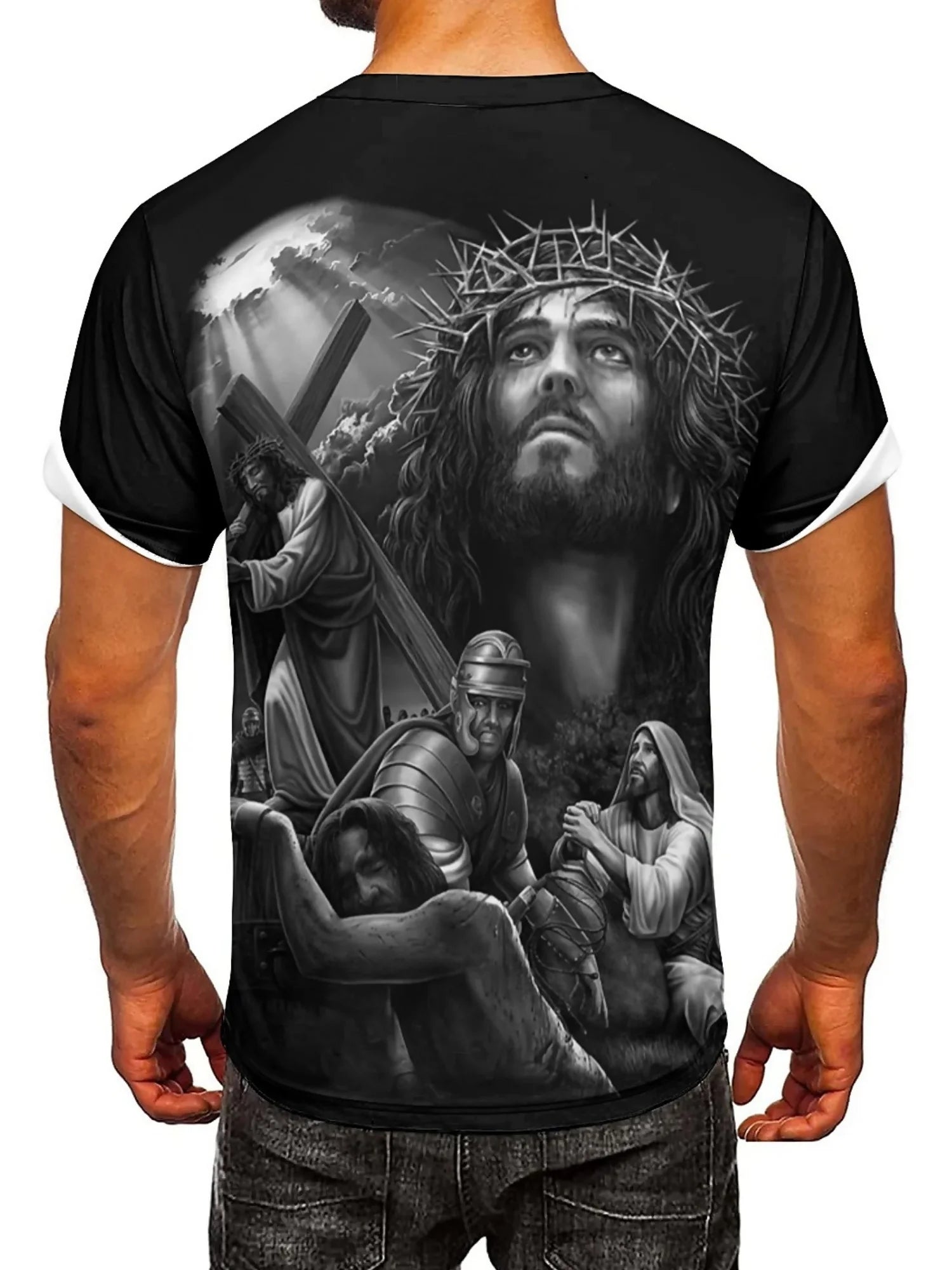 Men'S Plus Size Jesus 3D Print Short Sleeve T-Shirt - Soft Polyester Comfortable Round Neck Tee with Cross & Figures Design